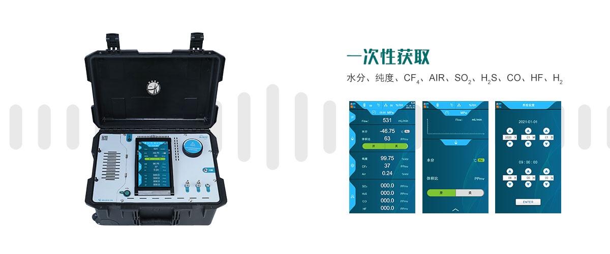 一次性獲取(水分、純度、CF4、AIR、SO2、H2S、CO、HF、H2)