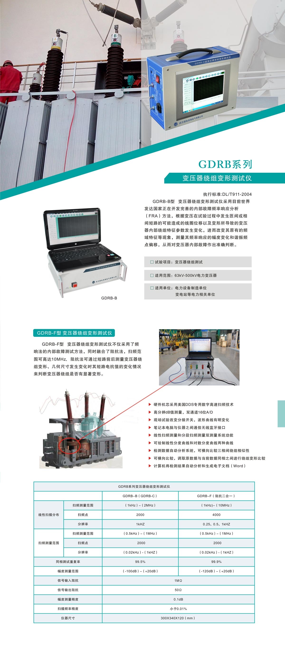符合國家電力行業(yè)標(biāo)準(zhǔn):DL/T911-2004 電力變壓器繞組變形的頻率響應(yīng)分析法