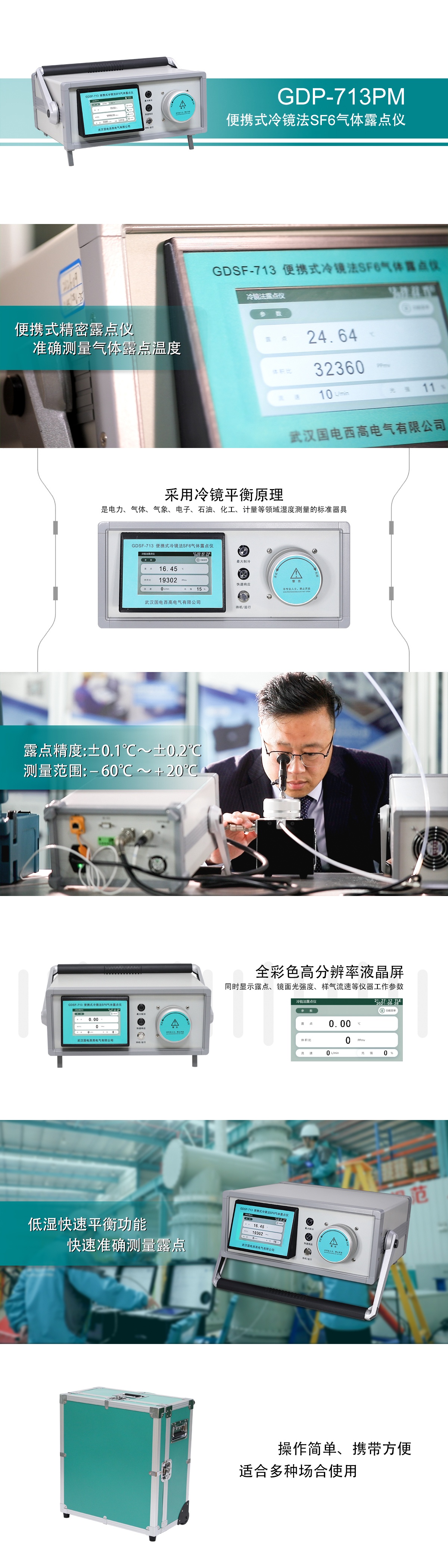 GDP-713PM 便攜式冷鏡法SF6氣體露點儀是電力、氣體、氣象、電子、石油、化工、計量等領(lǐng)域濕度測量的標準器具,是建立濕度標準裝置的理想選擇。