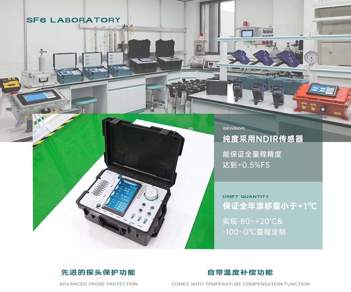 GDSF-411PPD? SF6氣體綜合分析儀是集SF6濕度、SF6純度測試以及SF6氣體分解物測試于一體,一次現場測量,即可完成所有指標檢測,大大節省了設備中的氣體,同時減少用戶的工作量,提高了工作效率。GDSF-411PPD? SF6氣體綜合分析儀采用了國外最優秀的傳感器;濕度采用穩定并且可靠的瑞士冷鏡模組、純度采用德國Smart-GAS NDIR原理傳感器,分解物測試采用瑞士曼巴波傳感器。彩色液晶顯示,實時顯示各種參數,全程傻瓜式的操作,內置充電電池,交直流兩用。