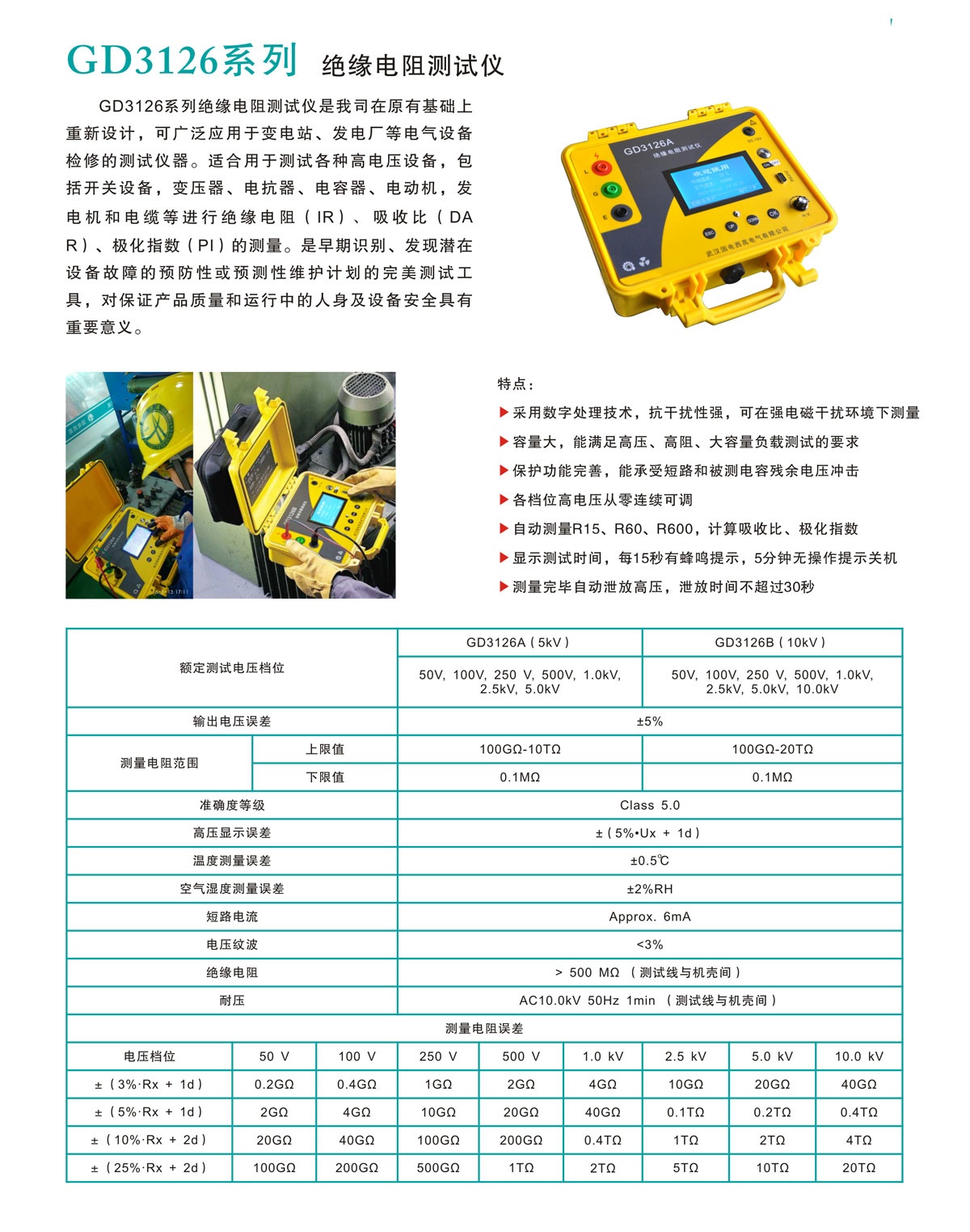 · 用于測試各種高電壓設備,包括開關設備,變壓器、電抗器、電容器、電動機,發電機和電纜等進行絕緣電阻(IR)、吸收比(DAR)、極化指數(PI)的測量;