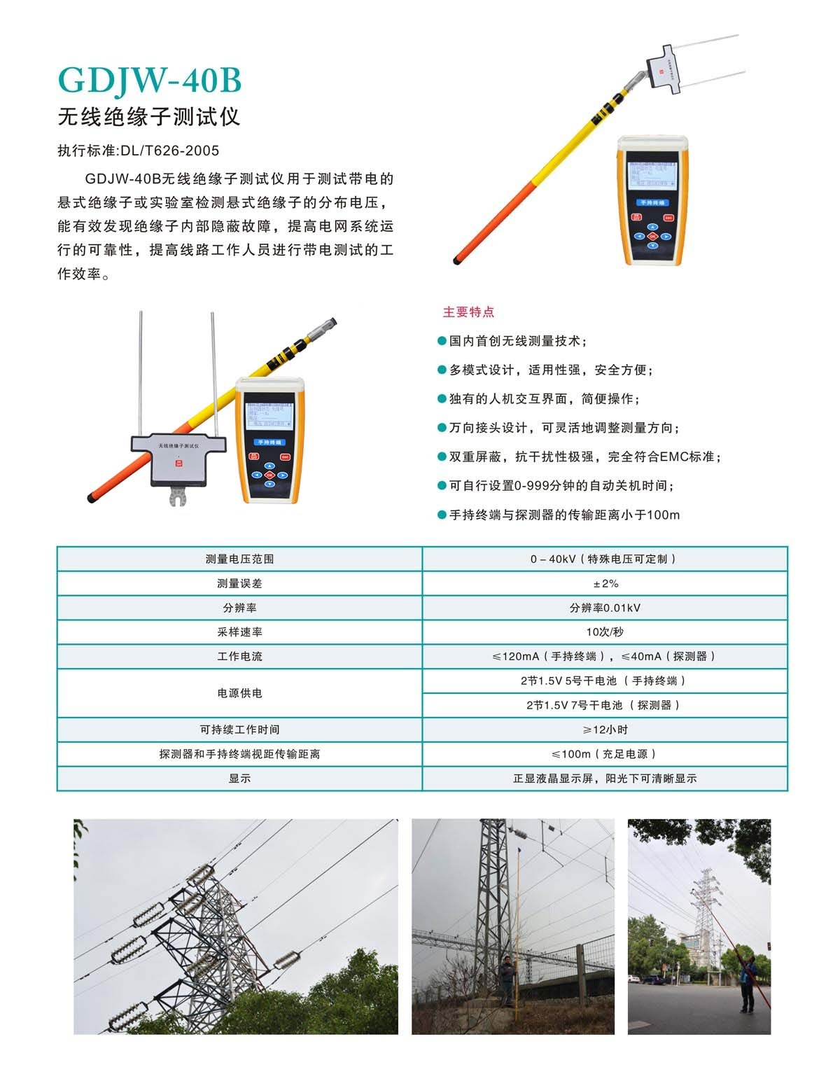 · 萬向接頭設計,可根據絕緣子串的懸掛方位,靈活地調整測量方向;