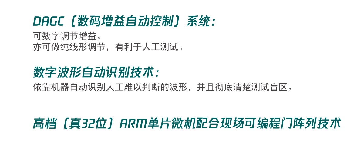 · DAGC(數碼增益自動控制)系統:可數字調節增益。杜絕原有同類型儀器因電位器旋鈕的原因造成波形的失真。亦可做純線形調節,有利于人工測試;