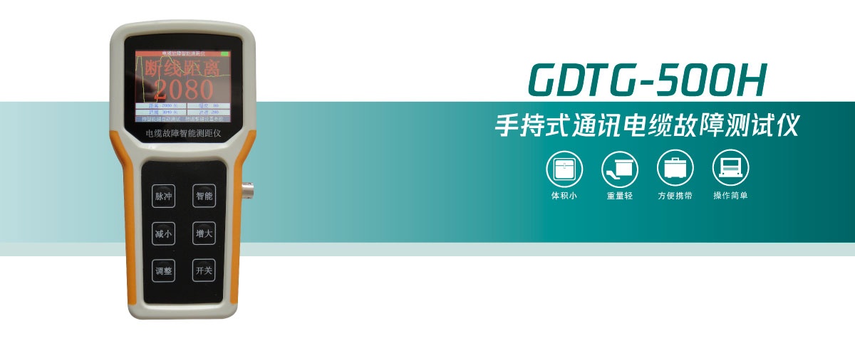 GDTG-500H 手持式通訊電纜故障測試儀(以下簡稱測距儀)適用于自動測量市話電纜的斷線、混線、地氣等芯線障礙的精確位置。