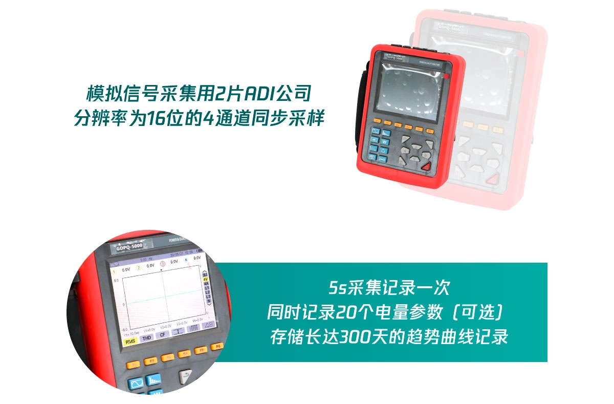 波形實(shí)時(shí)顯示(4路電壓/4路電流);電壓和電流真有效值;電壓直流成份;電流和電壓峰值;電流和電壓一段時(shí)間內(nèi)的最大/最小值;相量圖顯示;各相諧波的測(cè)量,達(dá)50次諧波;柱形圖顯示各相電流和電壓的諧波比;總諧波失真度(THD)的計(jì)算;各相有功/無(wú)功/視在功率值及總值;各相有功/無(wú)功/視在電能值及總值;變壓器K因數(shù)計(jì)算;COSφ位移功率因數(shù)(DPF)和功率因數(shù)(PF)的計(jì)算;閃變計(jì)算;三相不平衡計(jì)算(電壓和電流)