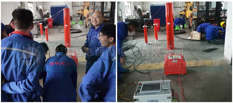 本次現場服務主要是為客戶培訓變頻串聯諧振裝置和直流電阻測試儀等設備的原理及操作方法。先給客戶講解設備的接線及現場試驗需要注意的安全事項,隨后開始實際試驗。