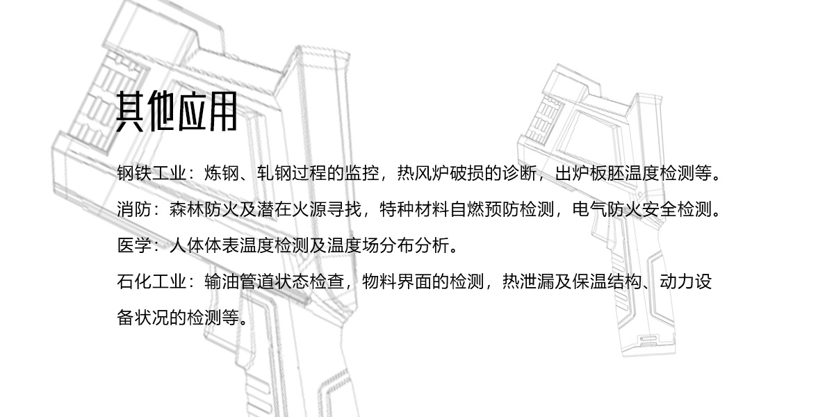 • 鋼鐵工業:煉鋼、軋鋼過程的監控,熱風爐破損的診斷,出爐板胚溫度檢測等。