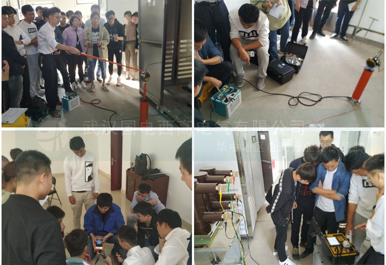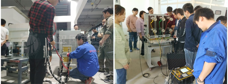 理論部分培訓完接著對相關試驗設備進行實操。實操中我們對相關被試品做了直流電阻測試儀、變比組別測試儀、介質損耗測試儀、交流耐壓實驗裝置、回路電阻測試儀、高壓開關機械特性測試儀、超低頻高壓發生器等一系列實驗,實操中強調關鍵的試驗要點并重申注意事項。之后對整個試驗進行回顧培訓,加深客戶的印象。