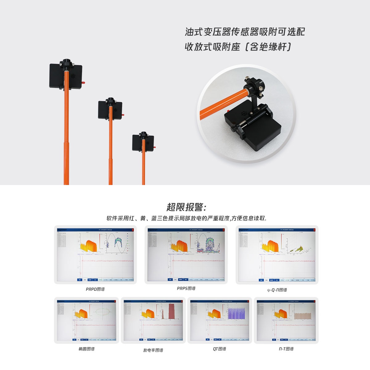9)超限報警:軟件采用紅、黃、藍三色指示方式,提示局部放電的嚴重程度方便信息讀取。